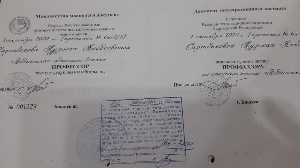 САРТБЕКОВА НУРЖАН КООДОЕВНА