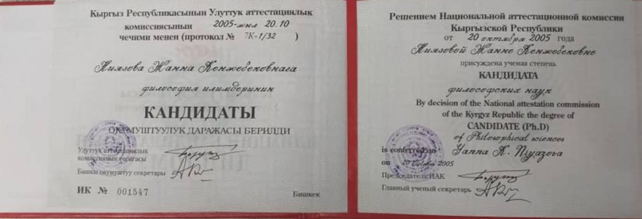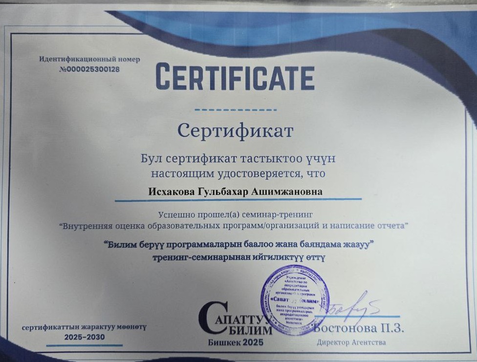 ИМАНАКУНОВА БЕРМЕТ БЕЙШЕНОВА