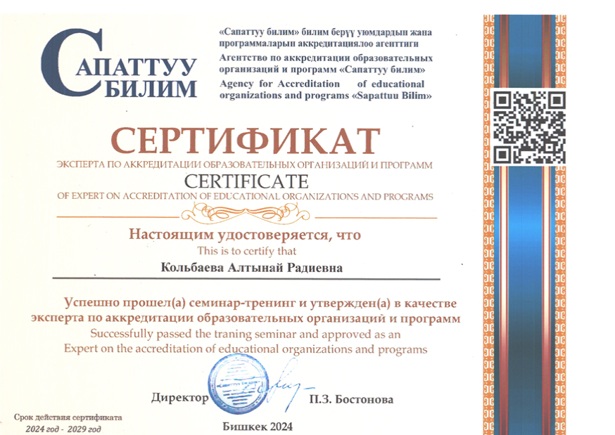 КОЛЬБАЕВА АЛТЫНАЙ РАДИЕВНА
